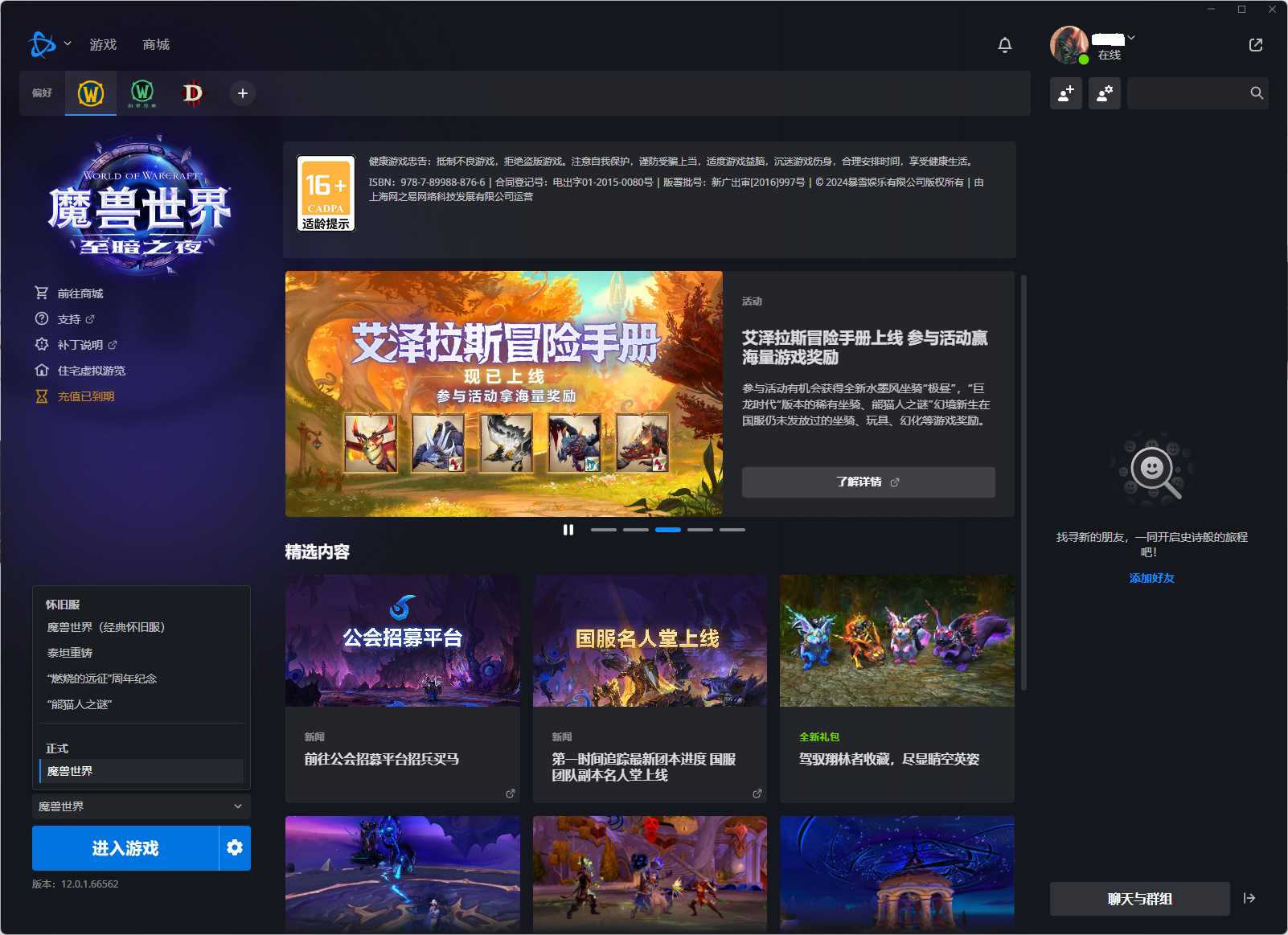 3. 本地地址国服完整 12.0.1客户端链接:https://wow.blizzard.cn/download/